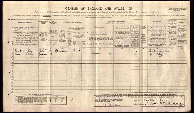 Even in the face of such profound loss and grief, life inexorably moves forward. The days, months, and years pass, and time, though it cannot heal all wounds, carries one forward nonetheless. It was now the year 1911, and once again, it was time for the census returns to be completed. However, this year marked a significant shift, the head of the household was now responsible for filling out the return. For Caroline, this change must have stirred a mixture of emotions. As she sat down to fill out the form, there must have been a sense of relief, perhaps even pride, in being able to document her life and family with her own hands.