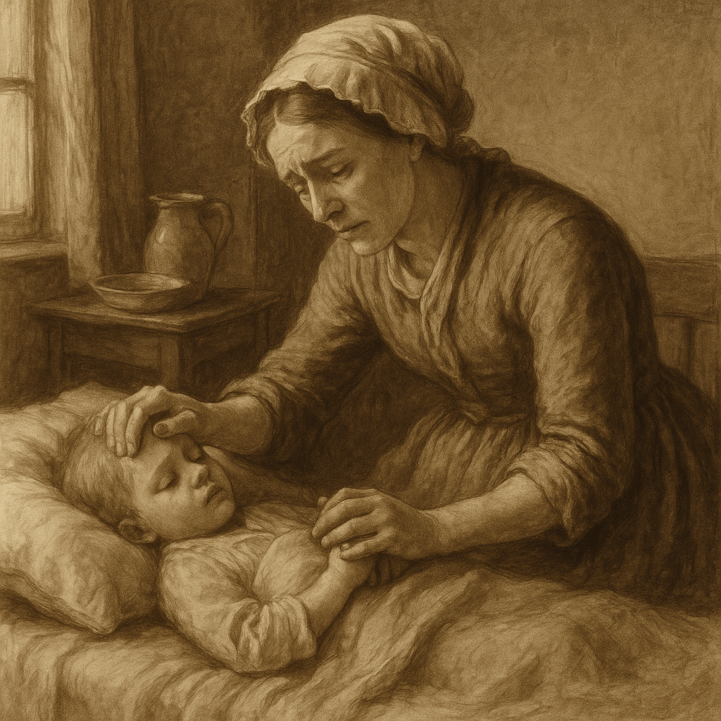 Nursing a child stricken with Typhoid Fever in 1852 was an agonizing experience for any mother, and for Caroline’s mother, Ann, it must have been especially harrowing as she watched her young son, Harry, fade away. At just three years old, Harry’s fight with the disease would have been a heartbreaking ordeal. Ann, with no real understanding of the disease's severity beyond its devastating symptoms, would have done her best to comfort him in any way she could.