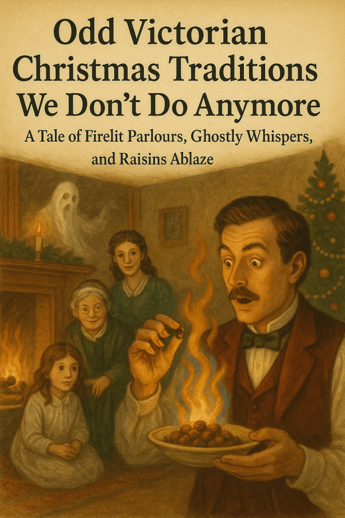 There is something delightfully peculiar about the Victorian Christmas, an enchantment woven from equal parts propriety and pandemonium. We often picture the era as a snow globe of gentility, wrapped in lace and candlelight, all polite smiles, sentimental cards, and holly-decked parlours smelling faintly of nutmeg. Yet beneath those velvet trimmings, and under the well-behaved gaze of portraits in gilt frames, lay a festive season far stranger, far wilder, and far more dramatically unhinged than most modern merrymakers ever suspect. For the Victorians lived in a world where romance twirled arm-in-arm with danger, where mischief nestled comfortably beside manners, and where the spirit of Christmas flared with the same theatrical bravado as a brandy-soaked pudding set alight at the centre of a crowded table. Their celebrations sparkled not only with tinsel and good intentions, but with a kind of gleeful eccentricity, an appetite for the marvellous, that made their winter rituals shimmer between reality and dream. This was an age that invented the Christmas cracker (a tiny gunpowder surprise wrapped in paper), revived medieval customs with feverish enthusiasm, and insisted that nothing said “holiday cheer” quite like a goose fattened to improbable dimensions. It was a time when parlour games grew rowdy enough to topple furniture, when the post office groaned under the weight of nearly 11 million Christmas cards a day, and when children pressed their noses to frosted windows, convinced that magic itself was on the move. So settle yourself now by the warm glow of a fire, let it crackle like an old story rediscovering its voice. Breathe in the scent of pine, mince pies, orange peel, and winter apples. Feel the hush of snow against the windowpane. And together, let us wander, hand in mittened hand, through a world of hearthside ghost tales, flaming raisins snatched from blue-tongued fire, and the deliciously unhinged wonders that only the nineteenth century could have produced. A world where imagination ruled the parlour, nonsense danced on Christmas cards, and even the shadows seemed to hum with possibility. For in Victorian Christmases, the extraordinary was not an exception. It was the tradition.