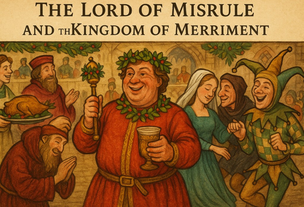 The Lord of Misrule and the Kingdom of Merriment. Wandering hand-in-hand with the Feast of Fools came a companion custom just as beloved and just as deliriously delightful: the crowning of the Lord of Misrule. In the smoky warmth of manor halls, in the bustling heart of small villages, and at times even within the glittering orbit of royal courts, an ordinary man was plucked from common life and transformed, with a wink and a cheer, into the sovereign of Yuletide chaos. He might be a servant, a stable-boy, a baker, or a fiddler; fortune chose whimsically, without regard for birthright or pedigree. Once selected, he was robed in bright, improbable colours, decked with garlands fragrant of winter greenery, and placed upon a makeshift throne as though he had descended from legend itself. A cup of spiced ale or steaming wassail was pressed into his hand, and by its blessing he was anointed king of mischief for the season. Under his merry rule, the world softened around the edges. The stiff constraints of medieval life melted like frost upon a sunny sill. Days ripened with feasting, with music that spiraled through rafters like ribbons of gold, with dances so lively that even the grudging feet of elders found themselves tapping. Servants were waited upon by their masters, who approached the table with ceremonious humility and a twinkle in the eye. Nobles dipped their heads to peasants in theatrical bows, a parody and yet a gentle reminder of shared humanity. The jesters, those agile poets of foolishness, found themselves promoted to high advisers, dispensing mock decrees and whimsical judgments that carried, for once, the full weight of royal authority. Bonfires crackled, mummers performed plays of ancient folklore, and in some places the Lord of Misrule led processions from house to house, gathering laughter like a harvest. The world, in those fleeting days, turned itself upside down like an hourglass, letting the sand of social order run in the opposite direction just long enough to let everyone remember how arbitrary its arrangement could be. This ritual inversion was not rebellion but catharsis, an ancient medicine for the spirit. Even the Church, though wary at times, understood the necessity of such sanctioned disorder, for it lifted the weariness of the year and swept away the dust of duty. There was magic in it, and mystery too, a sense that the fabric of the world had been loosened enough for joy to seep through the seams. The Lord of Misrule reminded all who followed him that power, no matter how splendid its trappings, is as transient as the flicker of a candle in a draught. He reminded them that laughter, freely shared, is a sacrament of its own kind, and that a community which can laugh together can also endure together. Within his brief and merry reign, peasants and lords, elders and children, the solemn and the silly, all found themselves woven into a single tapestry of mirth. In the end, the kingdom of merriment dissolved as gently as it had arisen. The garlands were laid aside, the bright robes folded, the mock crown returned to its chest. But the memory lingered in the air like the sweet after-scent of spices and evergreen: a reassurance that beneath the rigid architecture of everyday life lies a beating heart that longs for delight. And each year, when winter returned, that heart was given permission, indeed, encouragement, to revel once more in the holy folly of the season.
