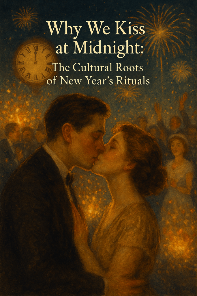When the final grains of sand slip through the hourglass of the old year, there is a hush, a trembling, a soft fluttering in the air as if time itself has paused on the threshold, one foot still in the past and the other already stepping into the tender light of the unknown. And in that breath-held moment, among crowds and couples and solitary dreamers, lips meet. A kiss at midnight, so simple, so human, and yet carrying the weight of centuries. Today it feels like romance, excitement, a small magic shared between hearts. But the roots of this moment are older and deeper, reaching into the soil of ancient winter festivals when people gazed into the darkness and sought reassurance that the sun and fortune, would rise again. Long before glittering cities counted down in neon lights, long before champagne corks sighed open and laughter swelled through living rooms, people sensed that midnight on the turning of the year was not an ordinary hour. It was a seam between worlds. The ancient Romans understood this instinctively. During Saturnalia, joy was not frivolous, it was protection. They believed that delight, connection, and affectionate touch had the power to bless the days ahead. To begin a new cycle with warmth was to invite warmth to follow you. And so embraces, caresses, and tender exchanges threaded their way into the festival’s ending, planting the earliest seeds of the ritual we still know. Centuries later in medieval Europe, the belief deepened. Midnight on New Year’s Eve was said to be enchanted, not in a fairytale sense, but in that earthy, old-world way where life feels threaded with mystery. People whispered that whatever surrounded you at the very first moment of the year would echo through all the days that followed. A kiss was no mere gesture, it was a promise to oneself and to another. To forgo it felt a little like stepping into winter without a cloak. When the Renaissance dawned and masquerade balls filled Europe with candlelight and velvet shadows, the kiss grew even more symbolic. At midnight the masks were lifted so that the new year might be greeted honestly, skin to skin, soul to soul. A kiss in this moment sealed the transformation. It was both an ending and a beginning, as though two people could anchor themselves inside time’s great turning simply by touching lips. The tradition crossed oceans, carried in the suitcases and memories of immigrants, then blossomed in the New World. Victorian sentiment added its dreamy gloss, whispering that the first person you kissed in the new year would shape the rhythm of your heart’s fortunes. And in the growing buzz of modern cities, where voices, fireworks, and countdowns washed together into a single tide, the midnight kiss became not just a private exchange but a shared cultural heartbeat. Even strangers watching from afar understood its meaning, a soft defiance against uncertainty, a declaration that love and connection deserved to accompany us into whatever lay ahead. But beyond all history, beyond all folklore, the midnight kiss remains so powerful because it is deeply, achingly human. A year’s ending has a strange emotional gravity. It gathers our memories, our failures, our triumphs, our unspoken hopes, into a single fragile moment. And stepping into a new year can feel like stepping into a place where the lights haven’t been turned on yet. We enter with anticipation, yes, but also with vulnerability. A kiss steadies us. It says, “Here I am. Here you are. We go together.” There is something quietly personal about this ritual, even when it is shared among millions. It is a reminder that new years don’t begin with fireworks or resolutions or clocks, but with connection. A kiss is a small, luminous act that bridges what we have been and what we hope to become. It is a blessing whispered against another’s mouth, a way of telling the universe that we welcome its turning not with fear, but with affection. Even if the kiss is not romantic, even if it’s given to a friend, a child, or a family member, it carries the same message: may love follow us. May kindness linger. May we step into the new year accompanied by warmth instead of loneliness. Perhaps that is why the moment feels enchanted, even now. Whether you celebrate in the intimacy of a quiet room, on a balcony overlooking a sleeping town, or shoulder-to-shoulder with a sea of strangers in a glittering city street, something in the air always softens at the stroke of twelve. For a heartbeat the world feels suspended. The past loosens its grip. The future has not yet begun. And within that fragile sliver of time, two people meet and choose closeness. Time moves on, of course, it always does. But the midnight kiss is our gentle rebellion, our way of telling the spinning world that the human heart still knows how to pause. Still knows how to open. Still knows how to make beginnings tender. And so, as calendars turn and centuries shift, we continue to meet the new year not with fear or solitude, but with lips that speak an ancient language of hope. For the softest gestures often carry the deepest roots. And sometimes, the entire promise of a new year can rest in a single, trembling, midnight kiss. Until next time, Toodle pip, Yours Lainey.