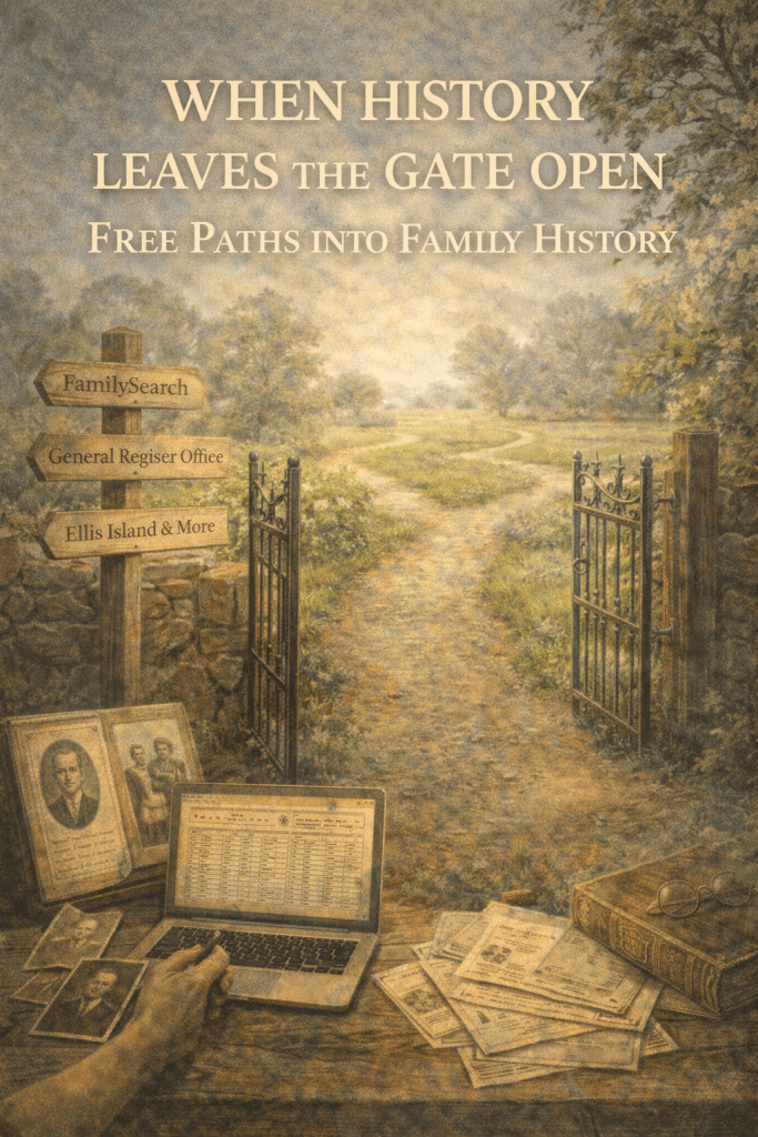 There is a particular kind of magic in free genealogy websites. They feel like old iron gates left thoughtfully unlatched, doors standing open not by accident but by invitation. For anyone drawn to family history, especially within the United Kingdom, these digital spaces hum softly with memory. They echo with footsteps once taken along cobbled streets, parish lanes, factory floors, and open fields. They remind us, gently and insistently, that history does not belong only to those who can afford subscriptions or scholarly credentials. Memory, like love, longs to be shared. Free genealogy websites are not lesser tools, nor are they merely stepping stones to something better. Again and again, they prove themselves to be the foundations upon which the most careful, ethical, and meaningful research is built. Used with patience and curiosity, they can guide you from your own name backward through decades and centuries of ordinary lives made extraordinary simply by being remembered. At the heart of free genealogy sits FamilySearch, a resource that often becomes a quiet companion rather than a loud guide. Created and maintained by the Church of Jesus Christ of Latter day Saints, it offers free access to an astonishing range of records from across the world, with particularly strong coverage for England, Wales, Scotland, and Ireland. Parish registers stretch back into the early modern period. Census returns gather families under one roof. Civil registration indexes offer structure and reassurance. Probate calendars whisper of property, affection, and dispute. Many records are digitised, some even browsable image by image, waiting patiently for careful eyes. FamilySearch rewards those who move slowly. It is tempting to accept the sprawling family trees built by others, but the true strength of the site lies in its records, not in its conclusions. The joy is in opening an image and reading it fully, noting the witnesses at a marriage, the marginal scribbles of a parish clerk, the occupations that shift from census to census. Each document is less a fact to collect than a conversation to enter, one that unfolds gently if you allow it time. For those researching England and Wales, the General Register Office website is one of the most quietly powerful tools available. Though it does not offer full certificates for free, its searchable indexes to births, marriages, and deaths provide clarity that can lift long standing uncertainty. Being able to identify exact registration districts, quarters, and reference numbers anchors families firmly in time and place. It is particularly valuable where names repeat across generations, as they so often do. This is a site that rewards patience and precision, offering certainty without spectacle. The National Archives of the United Kingdom opens another door entirely, one that leads into the machinery of the state and the lives caught within it. Its catalogue is free to search and vast in scope. Here live military service records, pension files, wills, criminal registers, transportation records, immigration papers, and correspondence that once passed across official desks. Many documents are digitised and freely available, while others reveal where deeper stories may be found. Learning to navigate the catalogue can feel daunting at first, but once familiar, it becomes a map to lives that rarely appear in baptism or marriage registers alone. Local record offices and county archives across the UK add a further layer of richness. Many now offer free online catalogues and selected digital collections. While not always fully digitised, these resources tell you what exists and where it rests. A poor law record in Yorkshire. A settlement examination in London. A burial register in Cornwall. They remind us that family history is deeply local, shaped by parish boundaries, workhouses, and neighbourhood ties as much as by blood. Beyond Britain, free genealogy websites follow the paths our ancestors took when they left home behind. For families who crossed the Atlantic, the Ellis Island and Statue of Liberty Foundation database offers free access to passenger lists recording arrivals in the United States. Each entry feels like a held breath, a moment balanced between one life left behind and another not yet begun. Names shift in spelling. Ages drift. Places blur. Yet courage gleams quietly through the ink. The National Archives of Australia provides free access to immigration records, naturalisation files, and military service documents that trace British families as they built new lives beneath unfamiliar skies. Library and Archives Canada opens census returns, passenger lists, and land records that map the slow spread of families across provinces and generations. These sites reward flexible thinking, creative spelling, and an openness to surprise, for migration rarely travelled in straight lines. Irish research, shaped profoundly by loss, makes free resources especially precious. The National Archives of Ireland offers digitised census returns from 1901 and 1911, allowing researchers to step into households frozen in time, seeing not only names but rooms, religions, occupations, and literacy. Irish Genealogy provides free access to civil registration images that feel like small acts of survival in themselves. Here, absence speaks as loudly as presence, and every discovered record carries weight. Newspapers, too, play a quiet but transformative role in free genealogy. Local libraries across the UK and beyond often provide free access to historic newspapers, either in reading rooms or online. Birth announcements, marriage notices, obituaries, court reports, shipping news, and snippets of community life fill the spaces between official documents. Newspapers remind us that our ancestors were not only recorded by governments. They were noticed by neighbours, discussed by towns, and woven into everyday life. Using free genealogy websites well is less about speed and far more about