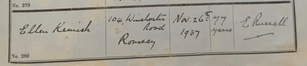 Alfred’s sister Ellen was mentioned in the Hampshire Advertiser on Saturday the 27th day of November, 1937, in an article titled “Romsey Woman's Accident.” The article reported the tragic events leading to Ellen’s death and the subsequent inquest that took place in Romsey: