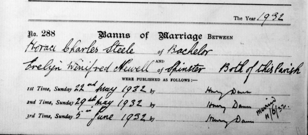 The calling of the marriage banns for Alfred’s daughter, Evelyn Winifred Newell, must have stirred a mixture of emotions within him. On three successive Sundays, May 22nd, May 29th, and June 5th, 1932, the name of his beloved daughter was read aloud in St. Stephen the Martyr Church on Avenue Road, Hampstead, as Evelyn prepared to marry Horace Charles Steele. Though it remains uncertain whether Alfred was present in the pews on those days, the sound of his daughter’s name, spoken aloud by the parish clerk, would have resonated deeply in his heart. For Alfred, this was a moment of profound significance. After years of raising his children with devotion, enduring the heartache of loss and the joy of new beginnings, he would have felt an overwhelming sense of pride as he watched his daughter begin a new chapter in her life. Evelyn was not only the daughter of Alfred and his late wife Estella but a testament to his love and sacrifice. Alfred had nurtured her, supported her, and watched as she grew into a woman ready to step into the world with the same strength and grace he had tried to instill in her. The thought of his daughter marrying, creating her own family, must have stirred both joy and sorrow within him. Even if Alfred may not have been physically present that day in church, his presence lingered in the quiet pride he must have felt for Evelyn. His love, unspoken but unwavering, echoed in the depths of his heart. His journey as a father, through loss, grief, and finally, moments of joy, had brought him here, to witness his daughter’s transition from the family she was born into to the new life she was about to embark on. His heart swelled with emotion, knowing that this was a significant milestone not just for Evelyn, but for him too. The life he had shared with Estella, their sacrifices, their quiet moments of love, were now embodied in this next step of Evelyn’s journey. The banns were read aloud on the three Sundays in the church, a formality in the journey to marriage but a deeply meaningful tradition for a father like Alfred, who had seen so much in his life. The official church record of these banns reads: Banns of Marriage – Year 1932 No. 288 Banns of Marriage between: Horace Charles Steele, Bachelor Evelyn Winifred Newell, Spinster Both of this Parish , Were published as follows: 1st Time: Sunday 22nd May 1932 by Henry Dann 2nd Time: Sunday 29th May 1932 by Henry Dann 3rd Time: Sunday 5th June 1932 by Henry Dann Married: 11th June 1932 As Evelyn’s name was spoken aloud, it wasn’t just an announcement, it was a reminder of all the moments that had led up to it, all the years of care and love Alfred had given her, and all the love she was now about to receive from her future husband. A father’s heart swells with both pride and quiet sadness at these milestones, knowing that time passes, and yet, in the end, his love for his children, like Evelyn’s wedding day, will always endure.