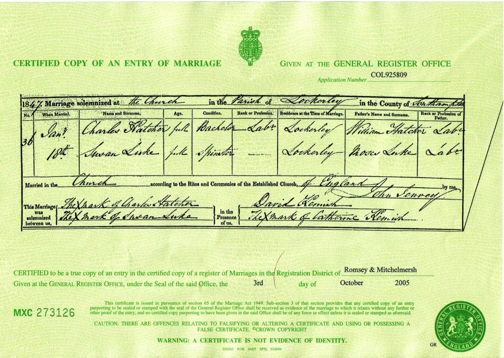 Mary was the youngest of five siblings. Her three brothers, William, born before the 7th day of September, 1777, James, born before the 13th day of April, 1780, and Richard, born before the 22nd day of May, 1785, were older than she, growing up in a world shaped by the same traditions and challenges that would define Mary’s own life. Her only sister, Hannah, was born before the 8th day of September, 1782, completing a family of siblings who shared the same quiet rural upbringing in Hampshire. Together, they would have formed a close-knit family, bound by the ties of siblinghood and the steady rhythm of life in the countryside, even as each one embarked on their own path in the world.