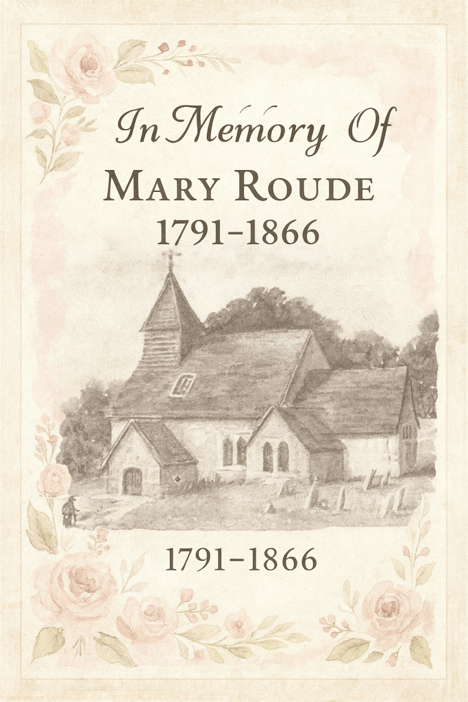 Mary Roude was born in 1791 in the peaceful village of Sherfield English, Hampshire, to William and Hannah Roud. Her father, William, was approximately 34 years old at the time of her birth, while her mother, Hannah, was around 39. Though the exact date of Mary’s birth remains a mystery, it is suggested by census records that she was born around 1791 in Sherfield English. These records, though offering a glimpse into Mary’s life, only provide us with rough approximations. The 1841 census, for instance, places her birth year as approximately 1801, while the 1851 and 1861 censuses confirm the year as 1791, but always with a slight degree of uncertainty.